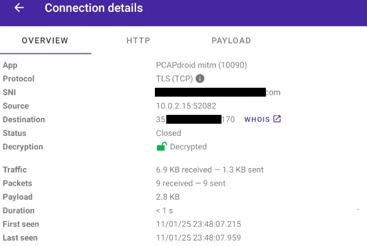PCAPdroid를 이용해 안드로이드 앱의 패킷을 캡쳐하려 했으나, 패킷 캡처를 켜니 앱이 정상 동작하지 않음